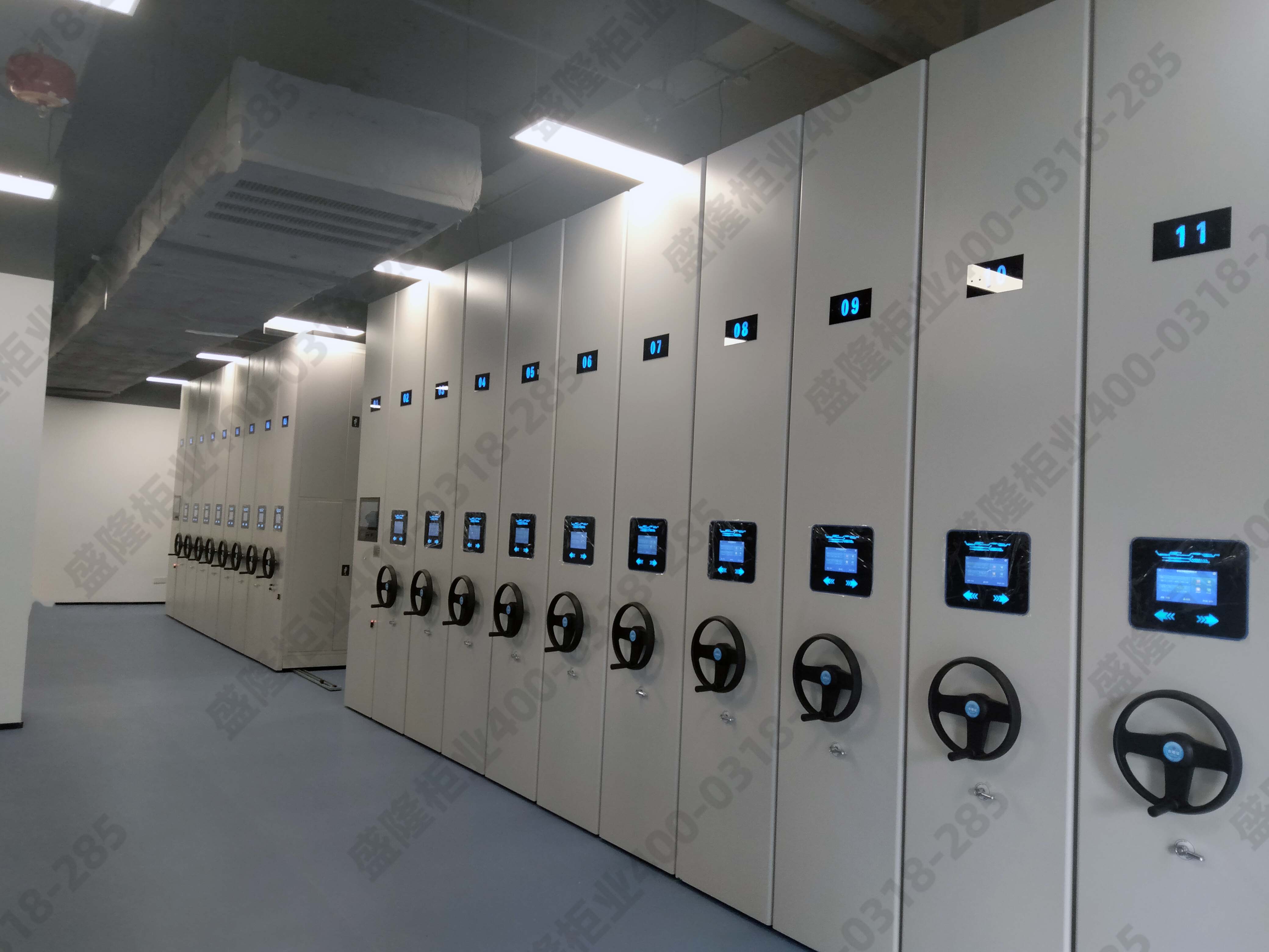 智能密集柜的底層和頂層在布局時需要特別關注。底層容易受到地面潮氣的影響,因此在安裝前要對地面進行防潮處理,如鋪設防潮墊或進行地面防水處理。同時,底層的層板應適當加厚,以增強承重能力。對于頂層,要考慮到通風和照明的需求,避免安裝過高的物品,影響空氣流通和照明效果。此外,頂層的密封性也很重要,要確保密集柜頂部與天花板之間沒有縫隙,防止灰塵和雜物進入。